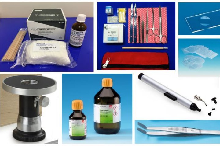 hier finden Sie: Ojektträger, Deckgläser, optische Reinigungssets und Reinigungsflüssigkeiten, Mikrotome, Skalpelle, Pinzetten, Scheren, Histokit etc.
