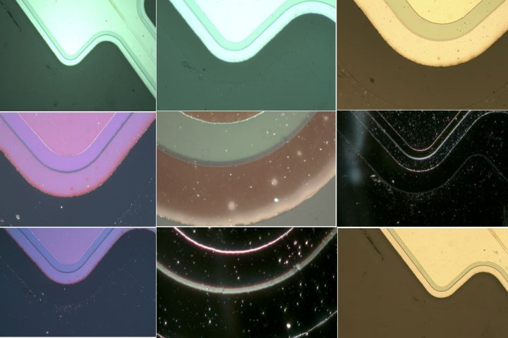 Zur Auswahl eines geeigneten metallurgischen Mikroskops wurde im obigen Bild ein Bauteil aus der Halbleiterfertigung eines unserer Kunden mit unterschiedlichen Mikroskopen von EUROMEX im Bereich 50 facher bis 500 fachen Vergrößerung mit unterschiedlichen optischen Verfahren aufgenommen (u.A. Hellfeld, Polarisation und Dunkelfeld). Die metallurgischen Mikroskope waren: iScope, Oxion und Delphi-X von EUROMEX.
