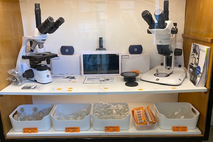 Mikroskope, die in unserem Ladenlokal auf Lager sind, erhalten Sie mit Rabatten.
