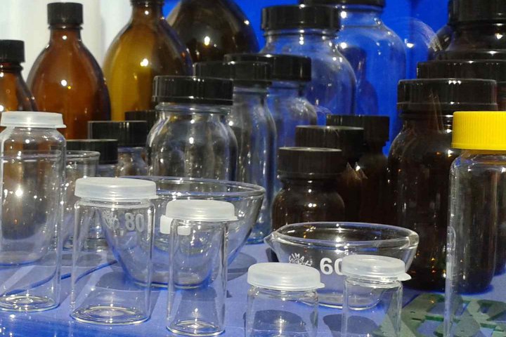 hier finden Sie: Glasflaschen und Behälter, Reagenzgläser, Bechergläser, Meßbecher, Meßzylinder, Glastrichter etc.